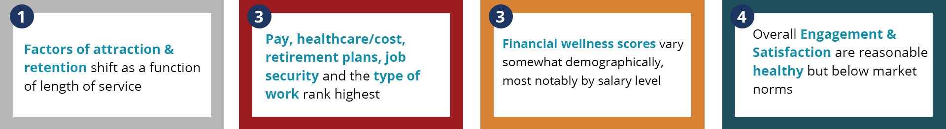 - The importance of pay (ranked #1) declines with age and the importance of healthcare and retirement increases